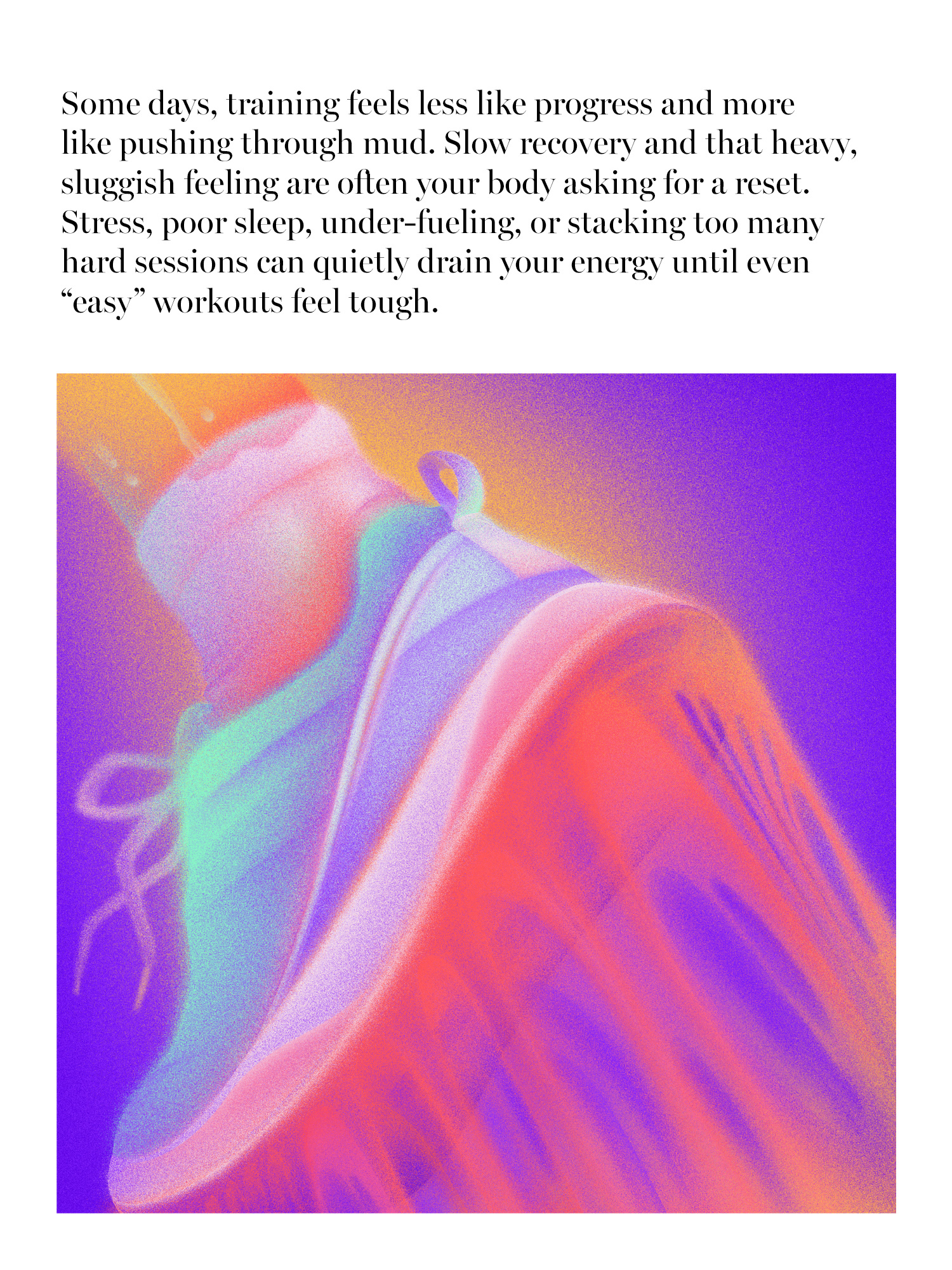 Illustrations on hydration issues, sleep anxiety, and diet choices when training.